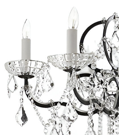 A Great European Tradition. Nothing is quite as elegant as the fine crystal chandeliers that gave sparkle to brilliant evenings at palaces and manor houses across Europe. This beautifully unique version from the Versailles Collection has 100% Crystal that capture and brilliantly reflect the light of the candle bulbs. The frame is all wrought iron, adding the finishing touch to a wonderful fixture. The timeless elegance of this chandelier is sure to lend a special atmosphere anywhere its placed!Assembly Required.