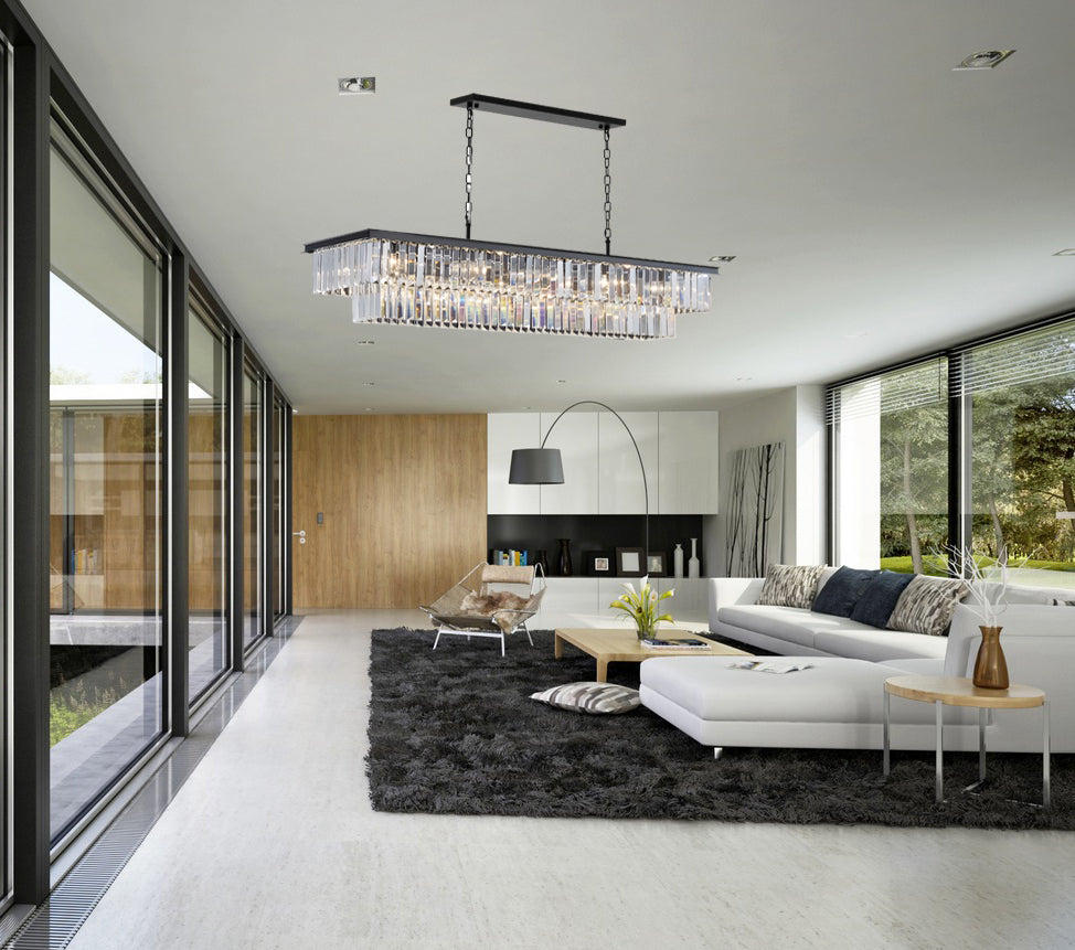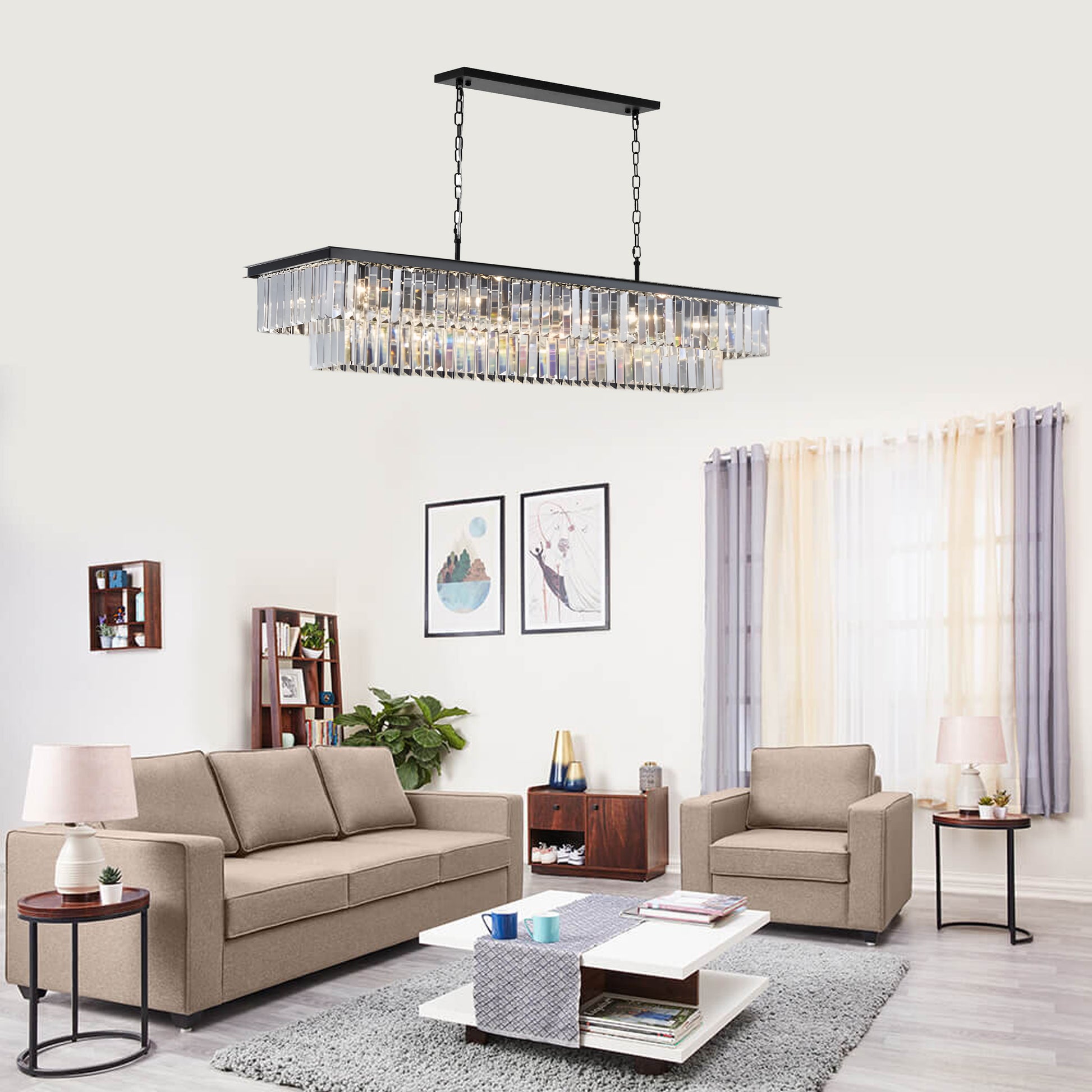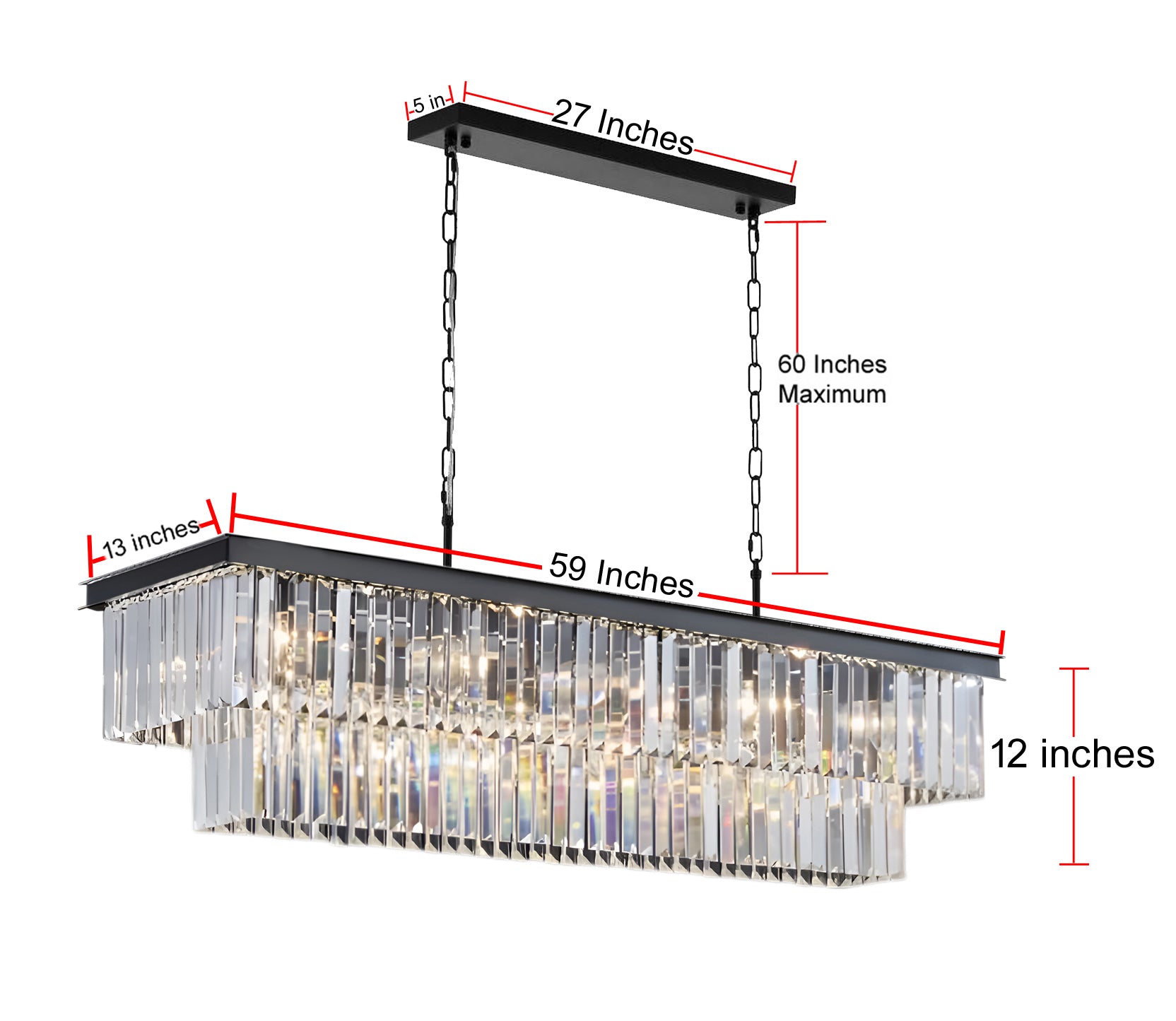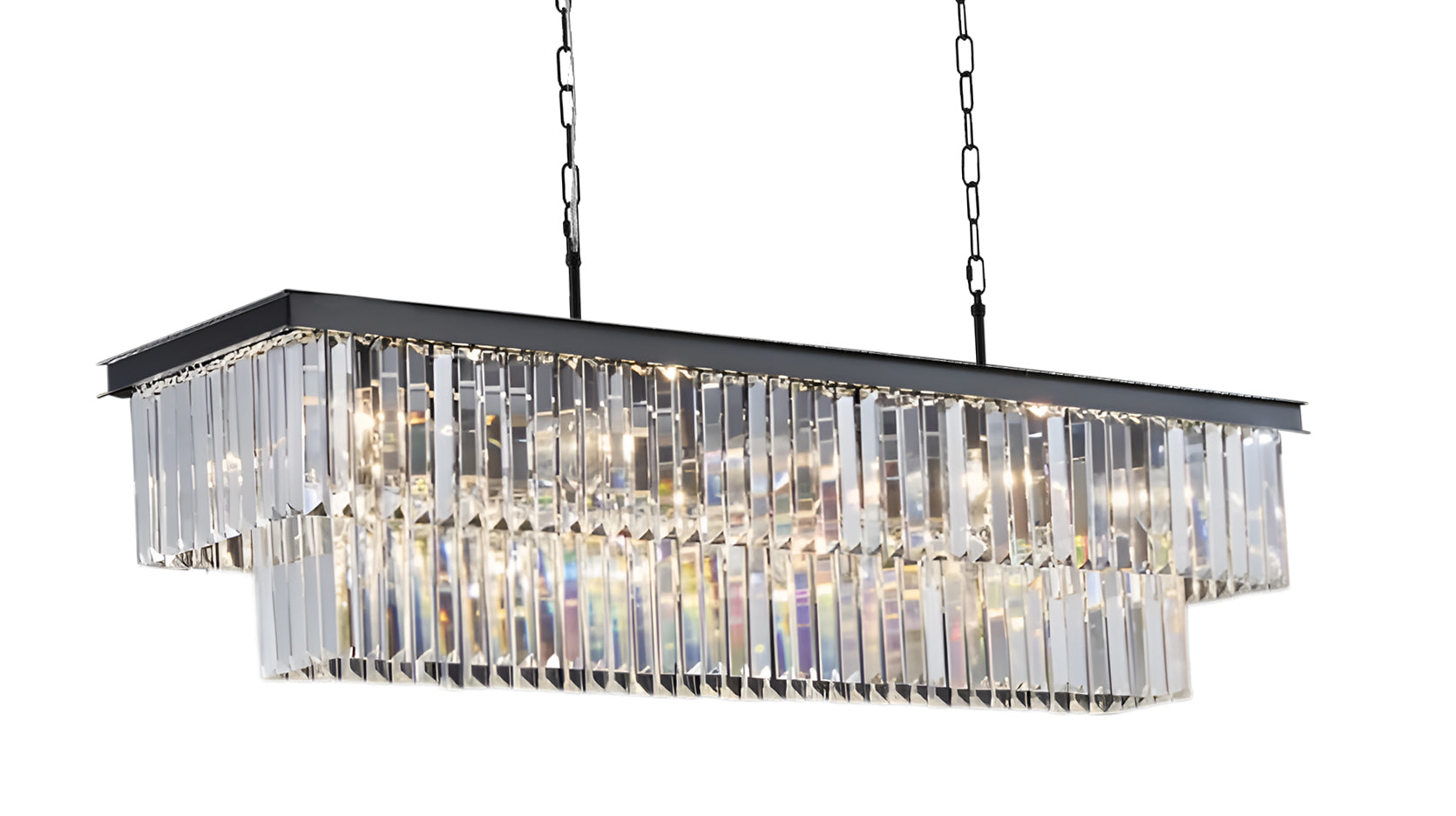 Retro Palladium Glass Fringe Rectangular Chandelier Chandeliers Lighting 59" Wide