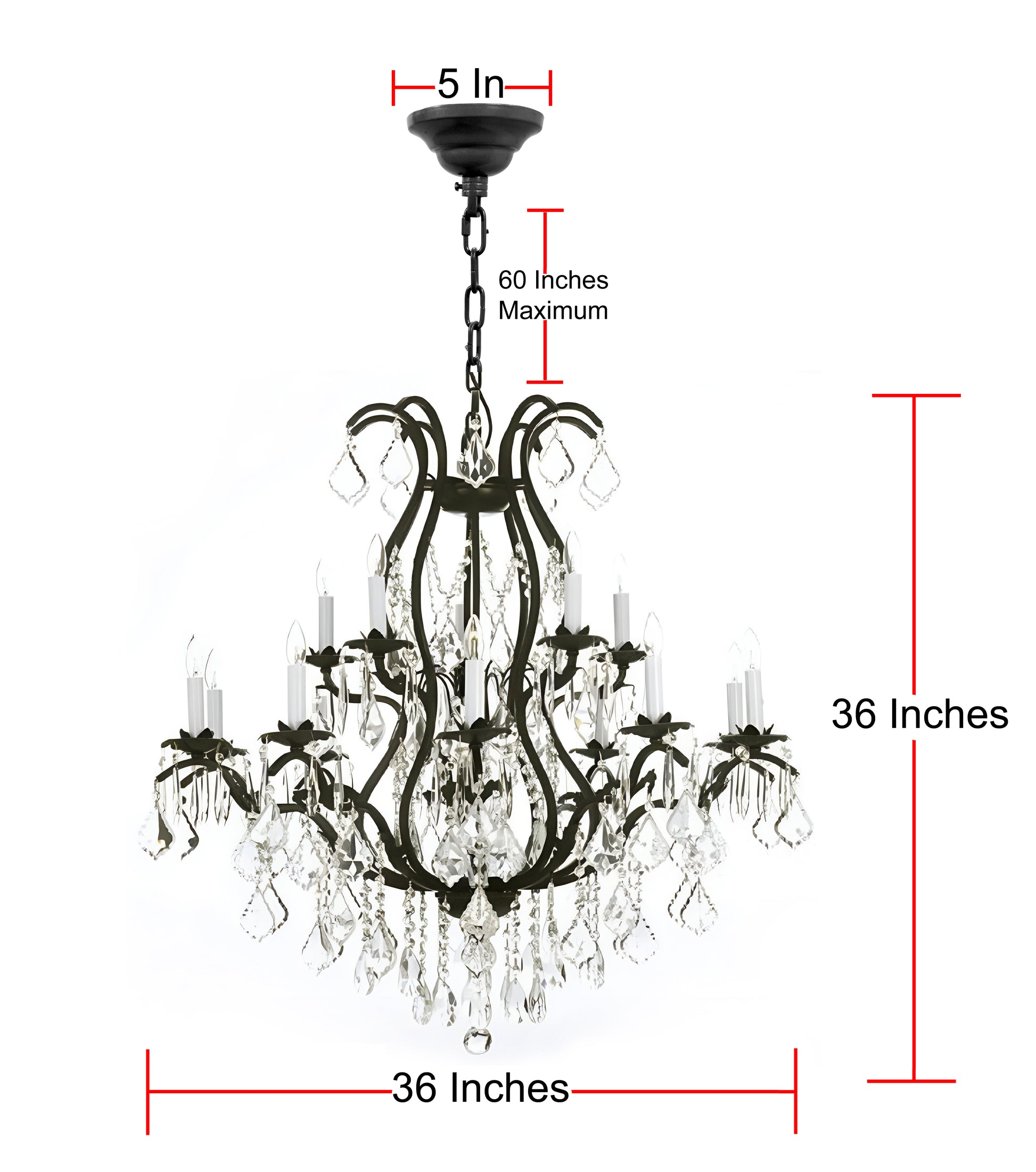 Rod iron and crystal chandeliers chandelier large with crystals H36" X W36"