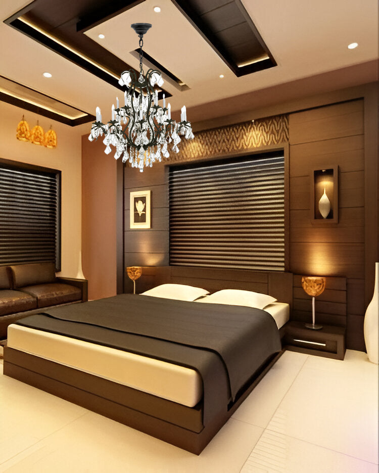 • Wrought Iron Crystal Chandelier Lighting Chandeliers H30" x W28"