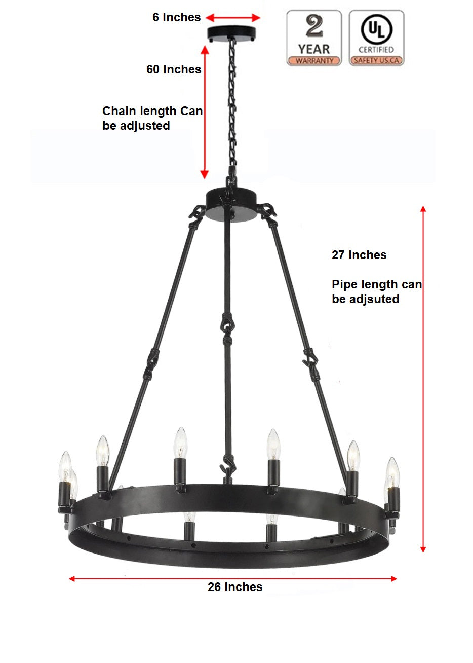 Wrought Iron Vintage Barn Metal Castile One Tier Chandelier Chandeliers Industrial Loft Rustic Lighting (W 26" H 27") - 199501201