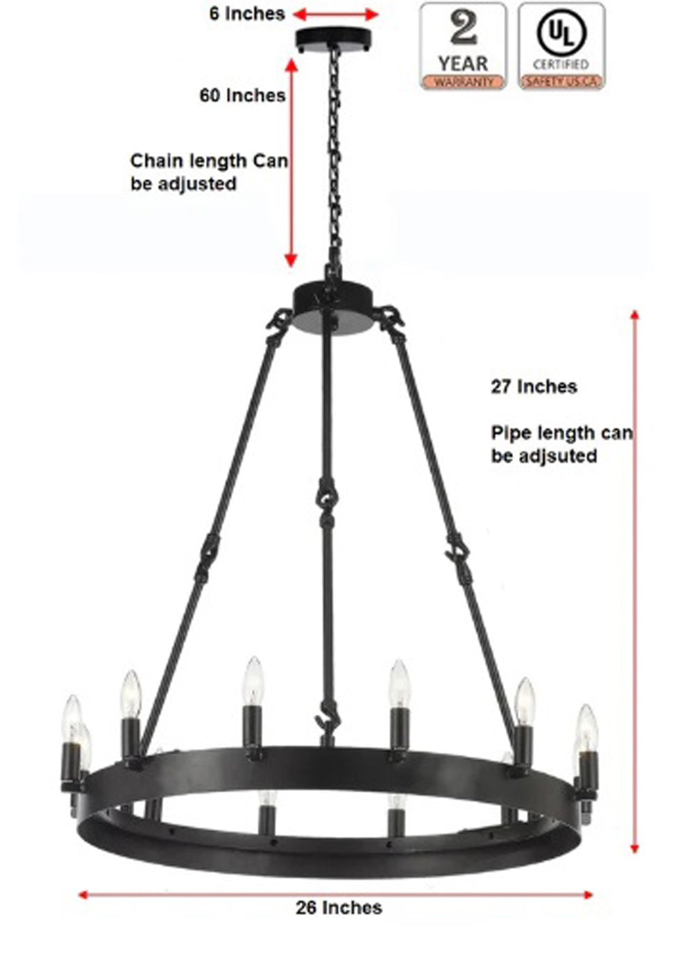 The thoughtful design extends to the practicality of installation, as the chandelier comes with 5 feet of chain and wire. This provides you with the freedom to adjust the hanging height, ensuring a seamless integration into your space.