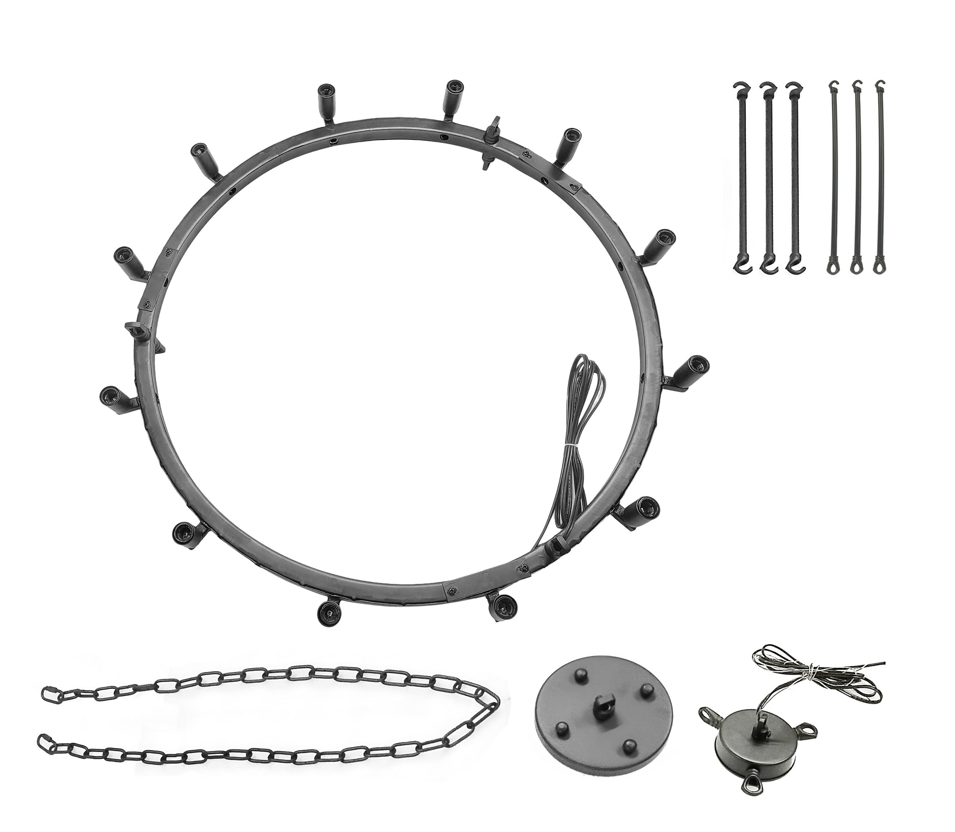 Featuring 12 lights arranged in a single tier, this chandelier creates a mesmerizing play of light and shadows, adding depth and character to your room. Whether you're styling an industrial loft or a rustic-themed space, the Wrought Iron Castile Chandelier complements your decor with its timeless appeal.